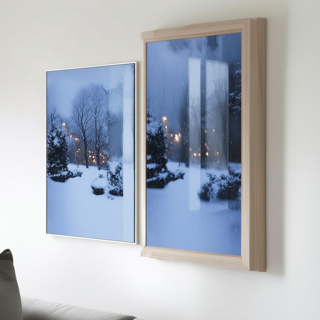 Выбор между печатью на холсте и под стеклом зависит от атмосферы, которую вы хотите создать: холст добавит уюта и тепла в зимний интерьер, а стекло создаст эффектную, современную и лаконичную картину.
